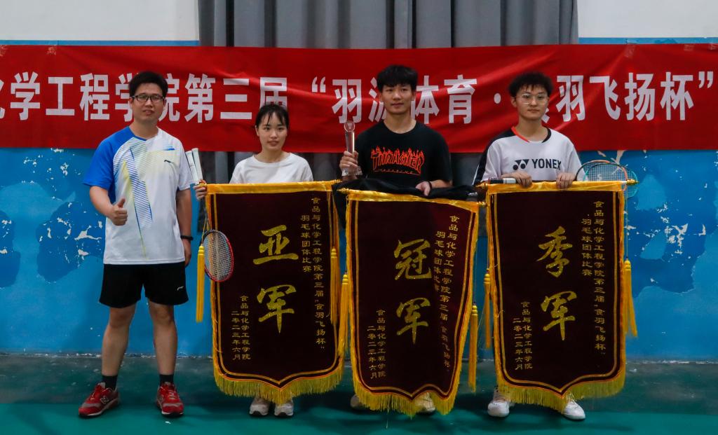 6月11日,食化学院第三届“羽源体育•食羽飞扬杯”羽毛球联赛闭幕式及颁奖仪式在我校南校区风雨球馆隆重举行,出席活动的有学院院长熊建文、党总支书记文海燕、办公室主任阳艳林、辅导员谢忠振、田鑫莉等教师代表及各班参赛代表共计200余人。
