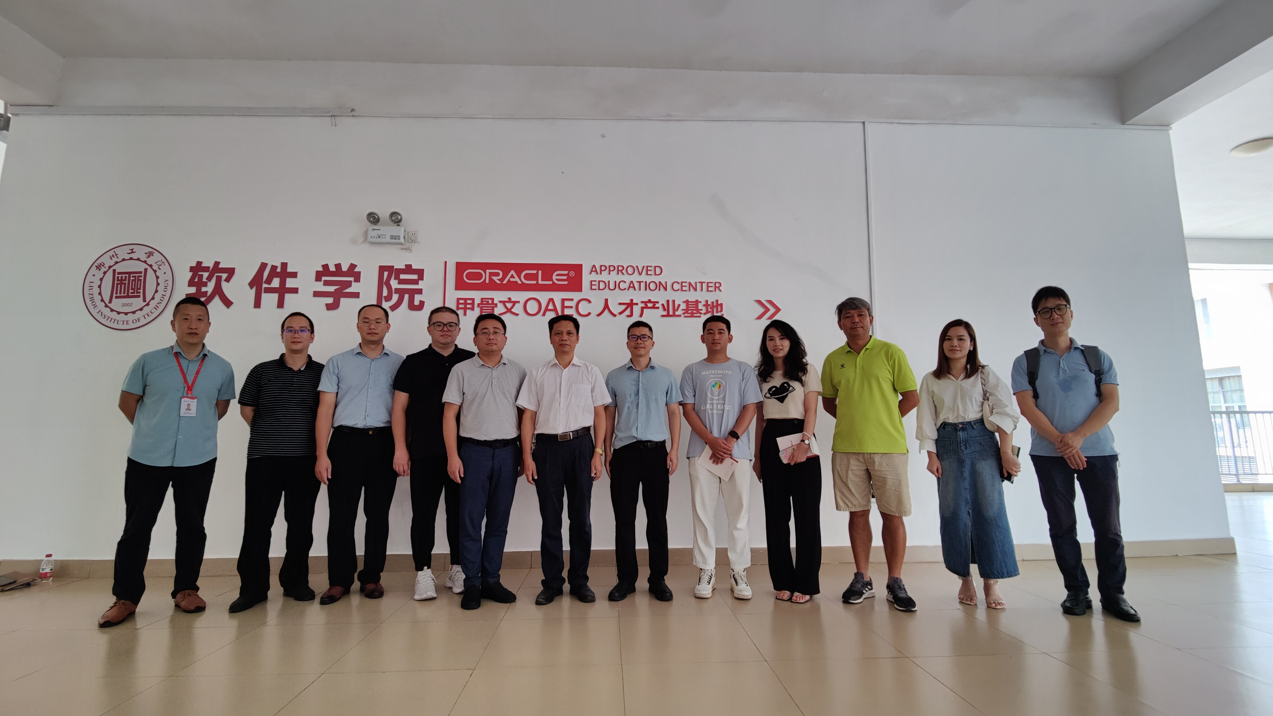 2022年8月4日上午,南宁市信息技术学会副会长兼人工智能专业委员会主任、南宁师范大学黄发良教授,学会副会长兼秘书长毛宁等一行10人莅临我院进行交流座谈,我校郑燕升副校长、科研与校企合作部部长张胜利、信息科学与工程学院副院长李健军、软件学院副院长杨玉华参加了交流会议。
