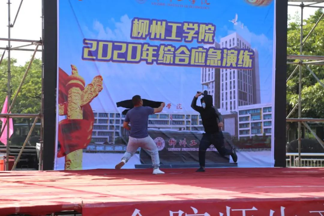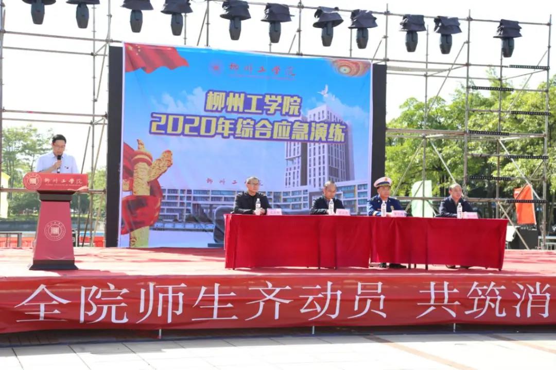10月24日下午,我院2020年综合应急消防演练在北门广场举行。学院党委书记罗云贵、柳州市柳东新区消防应急救援大队大队长黄达保、学院副院长毛汉颖、党委副书记李辉出席活动,2020级全体新生参加演练。活动由保卫部部长李松主持。