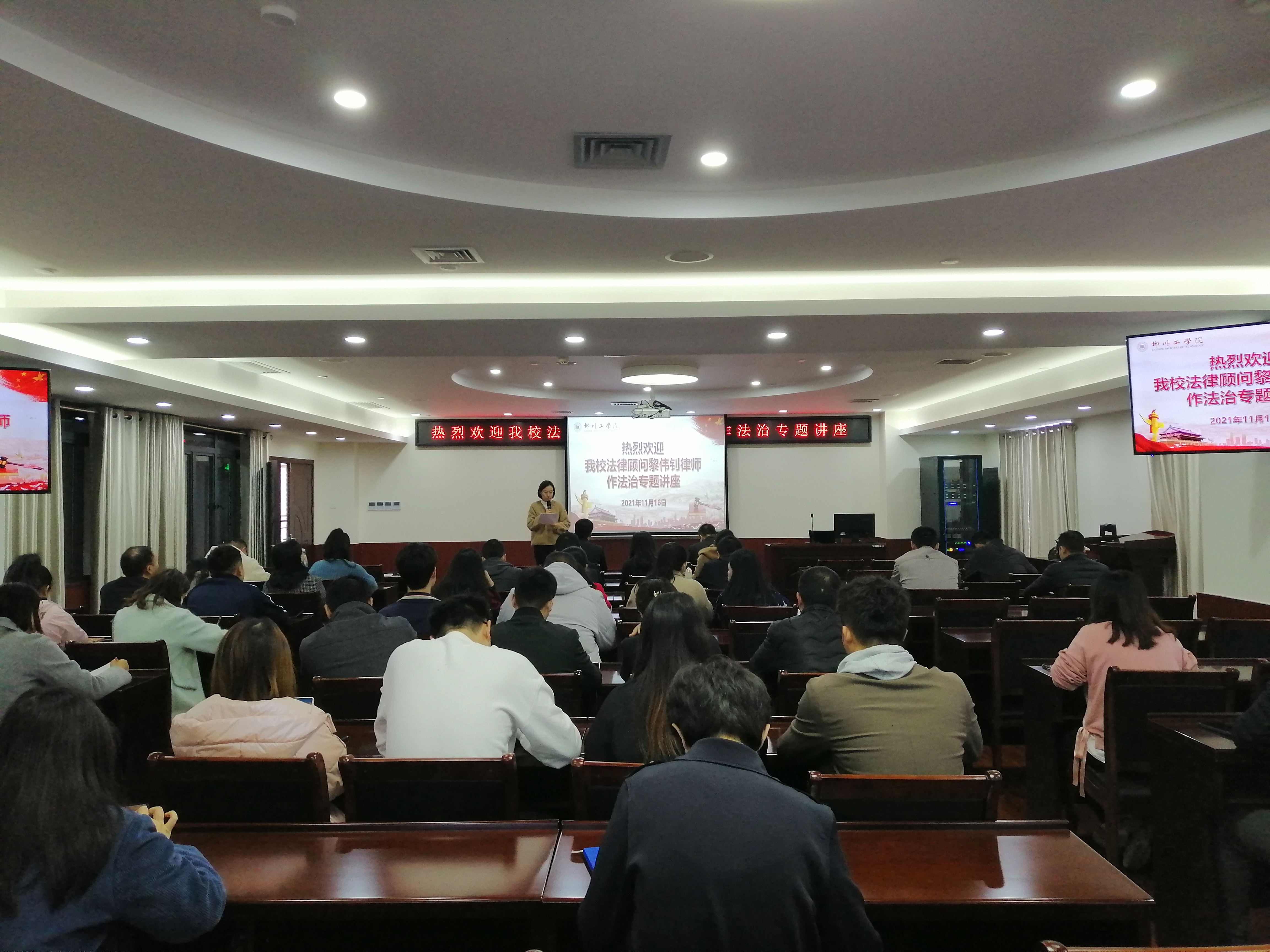 11月16日下午,黎伟钊律师以《维护校园法治安全是教职工应尽义务及责任》为题,在多功能会议室为我校全体学生工作人员作法制专题讲座。黎律师从专业的角度讲解了学校、教师在处理学生安全事故中是否承担责任的各种情形,通过具体的案例,对学校意外伤害事故的应对策略和应对程序给予了详细有效的指导,告知老师们如何采取措施尽可能避免校园安全事故的发生。此次讲座具有很强的针对性和实用性,让老师们深受启发和教育。在场的老师们结合工作实际,纷纷踊跃提问,黎律师也给予了专业的回答。