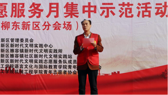 为学习贯彻习近平总书记关于深入开展学雷锋活动重要指示精神,3月14日,我校语言文化与国际教育学院党总支与柳东新区雒容镇党委在雒容镇文化广场联合开展了2023年柳东新区纪念毛泽东等老一辈革命家为雷锋同志题词六十周年暨学雷锋志愿服务月集中示范活动。柳东新区党工委副书记、管委会主任刘度量,我校党委书记罗云贵,柳东新区党工委副书记彭靖等应邀参加了此次活动。