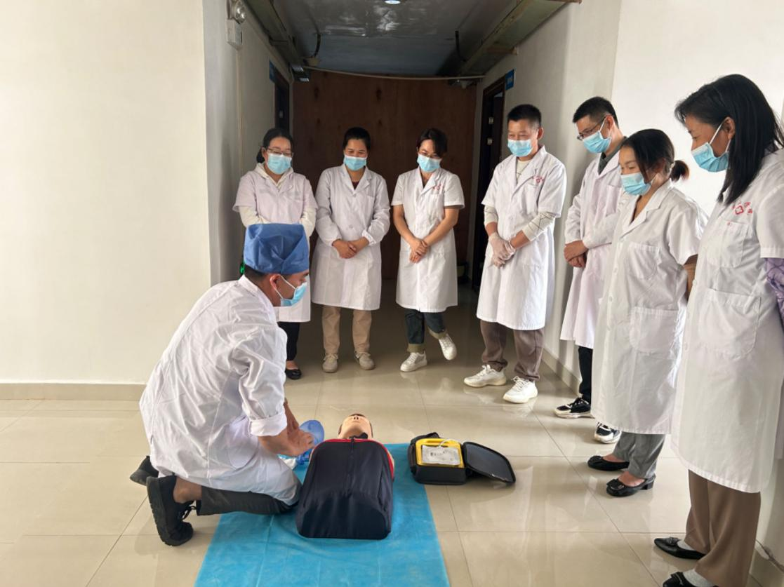 本次演练以“学生参加剧烈运动后突然倒地”为模拟情景,以实操为主,重点培训心肺复苏、自动体外除颤器(AED)使用、头皮外伤三角巾包扎和上肢前臂骨折固定等急救技能,并使用人体模型和真人进行实操演练,确保卫生所医务人员能够掌握主要的急救技能。