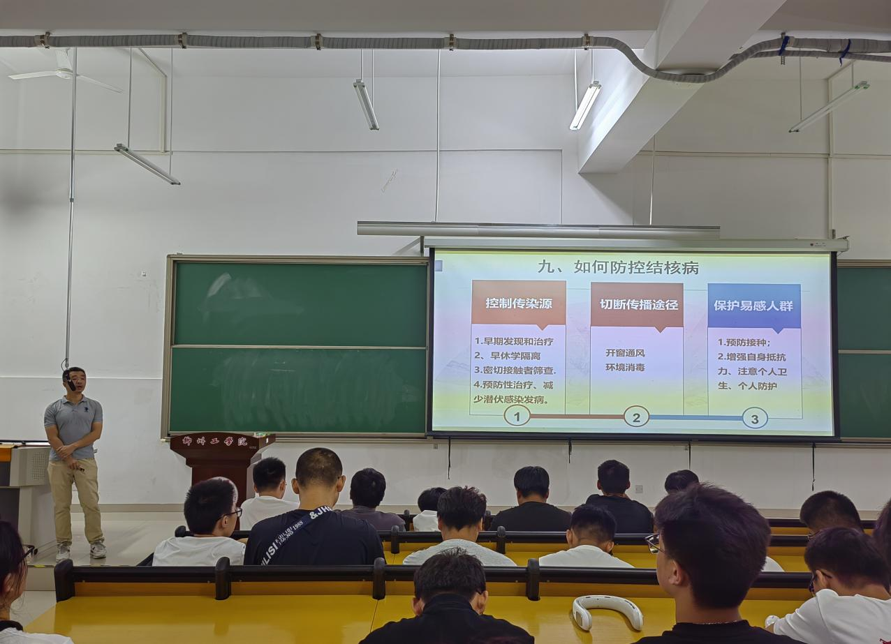 为有效积极推动我校健康教育工作,促进学生身心健康成长,由我校后勤基建处与学生工作部联合组织开展的2024级新生入学健康教育知识宣传讲座于9月11日下午在北校区T1-103教室举行。此次讲座采用线下讲座、线上直播同步的方式进行,分为预防艾滋病和结核病防控两个专题,每个专题90分钟,总时长为三小时。我们邀请了柳东新区疾控中心副主任孔继连和鱼峰区疾控中心主任医师唐嘉分别为我们讲授预防艾滋病和结核病防控相关知识,讲座由后勤基建处处长刘杉主持。