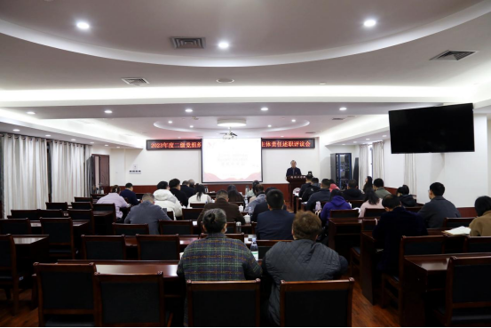 2024年1月5日下午,学校党委在科教楼18楼多功能会议室召开2023年度二级党组织书记落实全面从严治党主体责任述职评议会。学校党委书记罗云贵、纪委书记王锦雄,述职考核评议领导小组成员,各二级学院党总支书记、直属党支部书记,学校团委书记、各二级学院团委书记、专职组织员参加会议。
