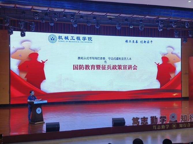 会议最后,由学生工作部刘长鸿老师进行国防教育宣传与征兵政策宣讲,详细解读征兵相关政策、入伍流程及未来发展前景等,现场解答同学们的疑问,引导大家积极投身军营、报效祖国。