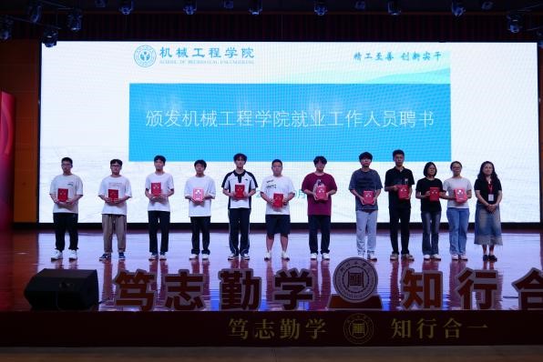 王丽书记宣读关于聘任机械工程学院2024-2025学年就业工作人员的通知,并颁发机械工程学院就业工作人员聘书。