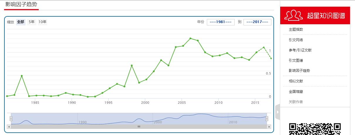 点击文章卡片右侧超星知识图谱—影响因子趋势,可查看此本期刊的影响因子趋势。