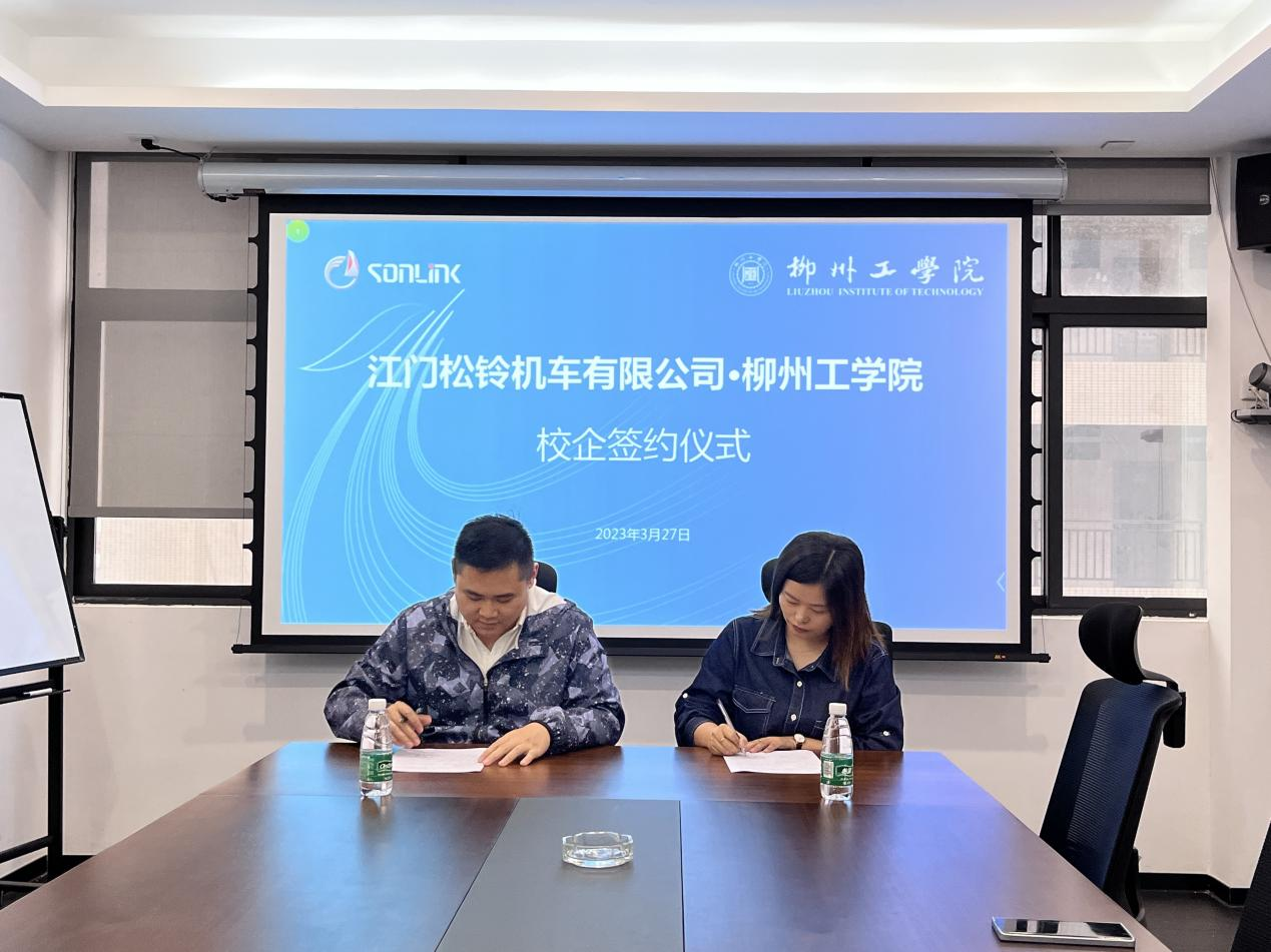 3月27日下午,小分队一行继续调研走访了江门松铃机车有限公司,参观了江门松铃机车有限公司展厅、工厂车间和体验区,了解公司发展历程、智能化生产流程和最新科技创新成果等,并分别与企业有关负责人、校友进行座谈交流。校友们纷纷表示,感谢母校的悉心培养和用人单位提供的平台。同时,汽车工程学院和江门松铃机车有限公司签署了校企合作协议书。