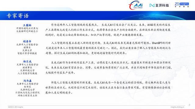 在场景应用篇中,报告介绍了生成式AI在文本、图像、视频等领域的应用案例,并探讨了生成式AI在教育、医疗、金融等行业中的具体应用场景和商业价值。