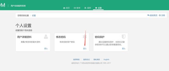 选择设置-修改密码。修改个人用户密码。