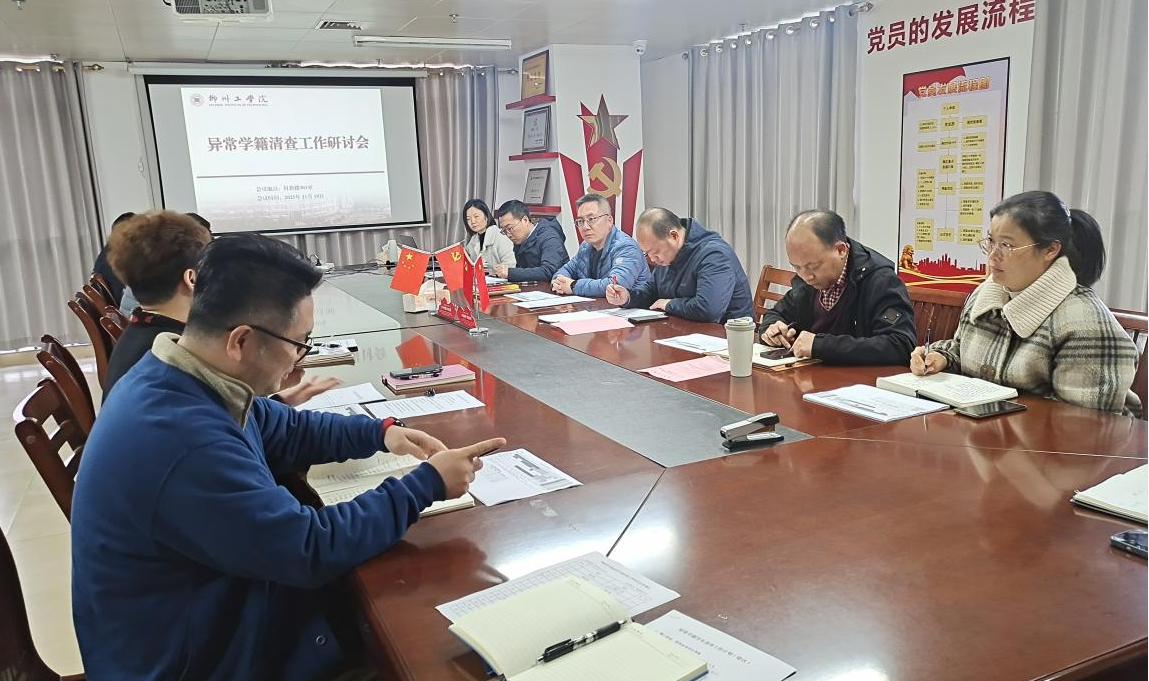 为深入贯彻落实教育部及学校学籍管理规定,进一步提升学籍管理规范性与服务水平,学校于2025年11月19日下午在科教楼301会议室组织召开异常学籍清查工作研讨会。会议由教务处与学生工作部联合召集,各二级学院书记及相关职能部门负责人参加。